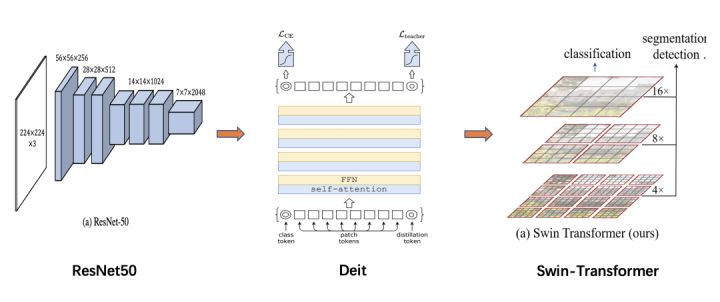 - Rich pre-training model library: Provides rich pre-training models, based on the transformer model, also includes mainstream CNN models, supports ImageNet pre-training and self-supervised pre-training. Compatible with PytorchImageModels to support a richer visual Transformer backbone.