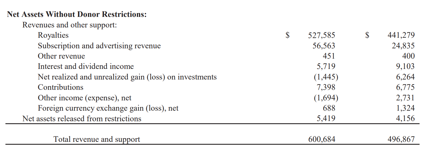 The increase in income is concentrated on the main business goals and continues to grow, which reflects that the business model of the Mozilla Foundation/Company is healthy and sustainable, and it can be described as thriving!