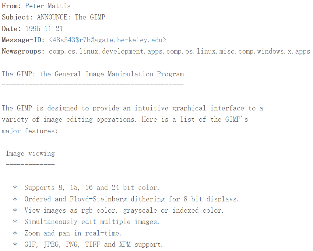 In 1996, RMS visited Berkeley, and the GIMP author asked him if he could change General to GNU. Under the license of RMS, the full name of GIMP was changed to “GNU Image Manipulation Program” (GNU image processing program), which also means that GIMP has become a part of the GNU project.